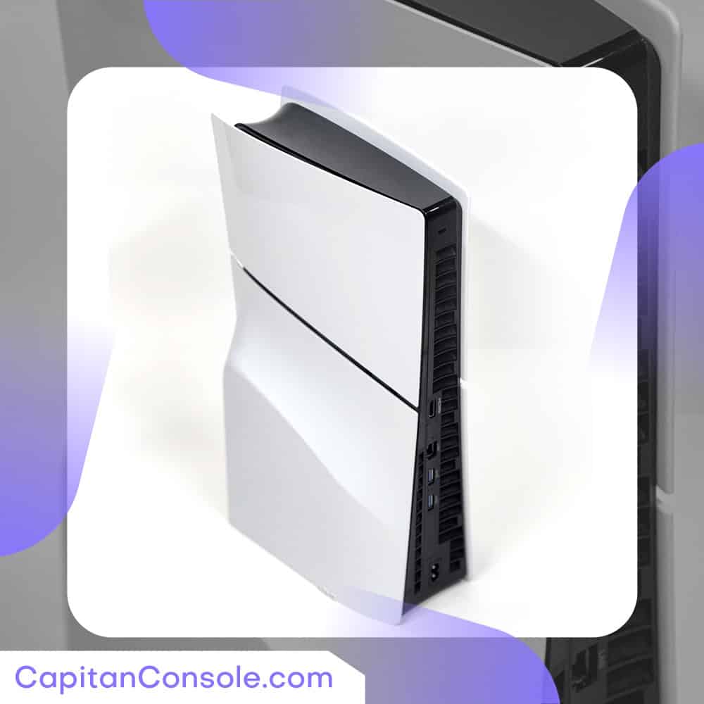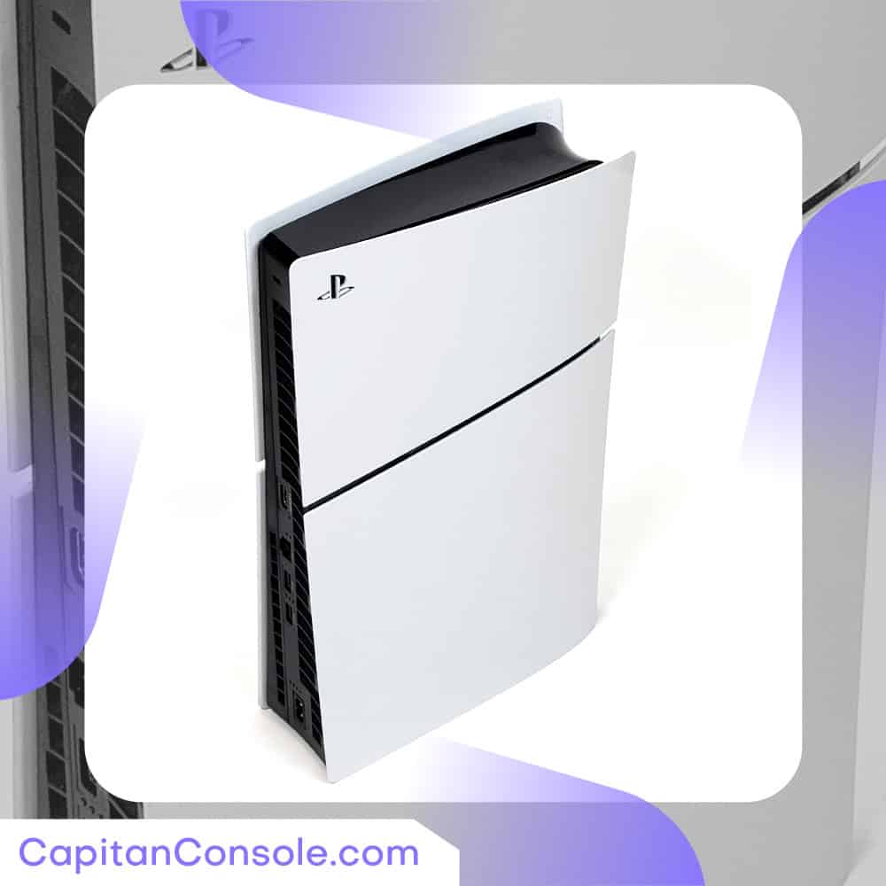 PlayStation 5 Slim Standard با طراحی جمعوجورتر، حجم کلی کنسول را بیش از 30 درصد نسبت به مدلهای قبلی کاهش دادهاست. این کاهش حجم به کاربران اجازه میدهد تا کنسول را در فضاهای کوچکتر قرار دهند. این کنسول بازی 18 درصد هم سبکتر شده است.پورتها و سوکت تعبیه شده در قسمت پشت دستگاه: